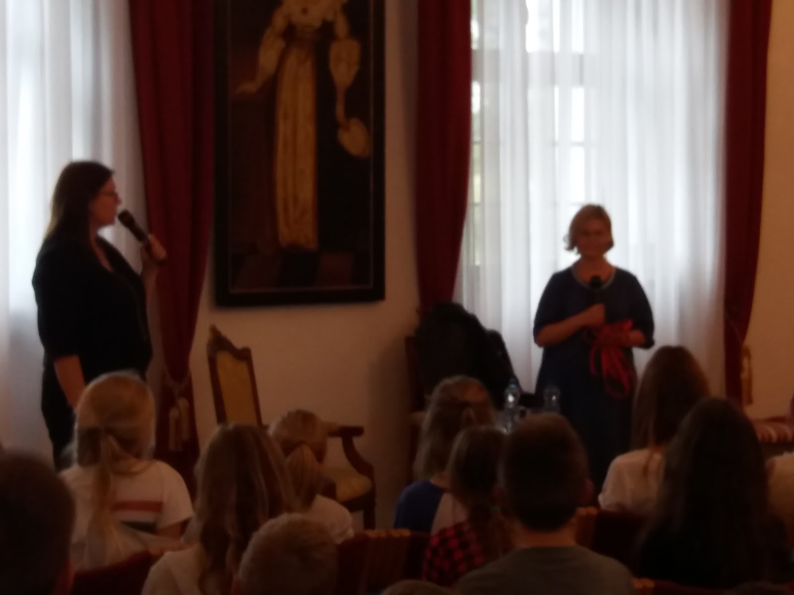 Dzięki współpracy z Miejską i Powiatową Biblioteką Publiczną dnia 18 września uczniowie klasy V c oraz VI c uczestniczyli w spotkaniu autorskim z Anną Czerwińską - Rydel - muzykiem, pedagogiem, gdańską autorką ponad dwudziestu książek dla dzieci i młodzieży, twórczynią serii biograficznych opowieści o wielkich Polakach: „Jaśnie Pan Pichon” - rzecz o Fryderyku Chopinie; „W poszukiwaniu światła” - opowieść o Marii Skłodowskiej-Curie; „Po drugiej stronie okna” - opowieść o Januszu Korczaku; „Mój brat czarodziej” – opowieść o Irenie i Julianie Tuwim; „Fotel czasu” – opowieść o Aleksandrze Fredrze; „Mistrz”- spotkanie z Witoldem Lutosławskim; „W podróży ze skrzypcami” - opowieść o Henryku Wieniawskim; „Moc czekolady” - opowieść o Wedlach i czekoladzie; „Słońcem na papierze” - wesoła opowieść o Kornelu Makuszyńskim; „Sto tysięcy kartek” - opowieść o Józefie Ignacym Kraszewskim; „Pięć skarbów pod wielkim śniegiem” - opowieść o Wandzie Rutkiewicz”. Pani Anna podczas spotkania opowiadała o swojej twórczości i drodze artystycznej, o tym, co ją inspiruje i motywuje do pisania. Najwięcej uwagi poświęca książkom biograficznym. Autorka potrafi o swoich bohaterach opowiadać ciekawie, barwnie i z dowcipem. Nawiązała świetny kontakt z uczniami, którzy zadawali wiele interesujących pytań. Podsumowaniem spotkania było tradycyjne rozdanie autografów. Spotkanie przebiegło w miłej, ciepłej atmosferze.